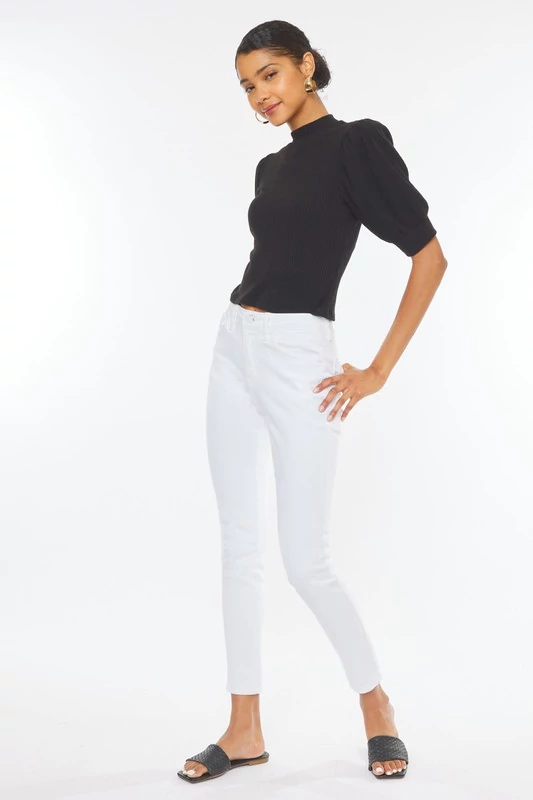 Keep your casual look crisp and classic with these high-waist jeans in a slimming skinny leg fit.