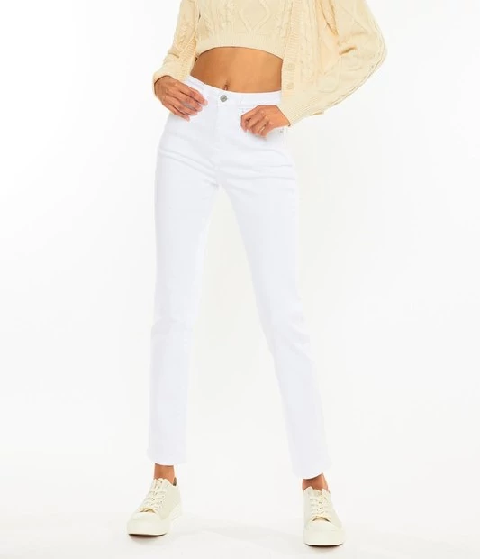 Crafted from premium stretch denim with excellent shape recovery, Serenity high-rise jeans feature a slim straight-leg silhouette.