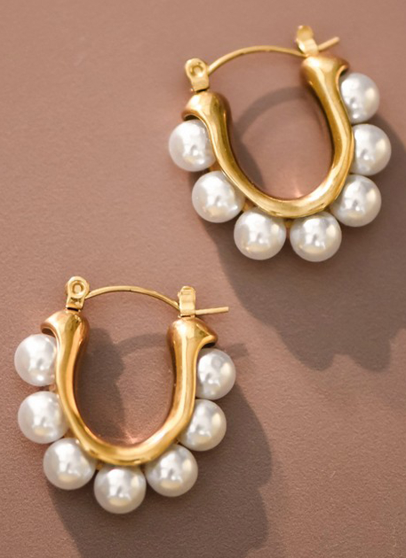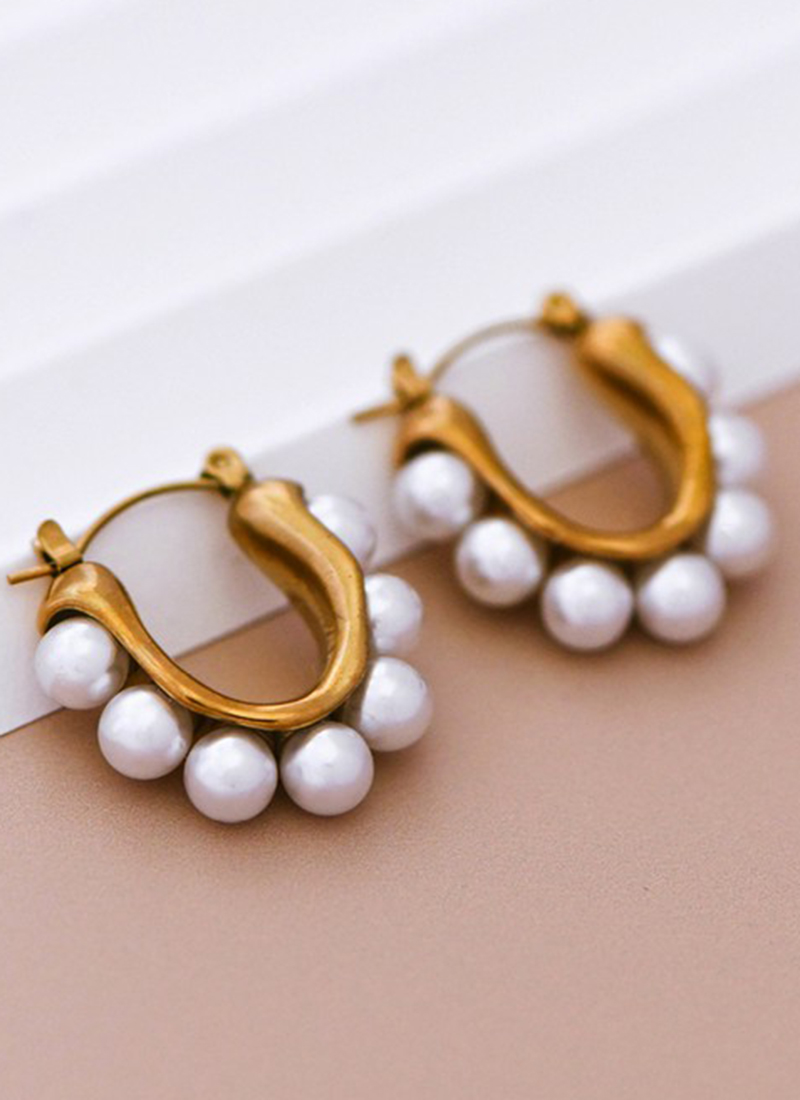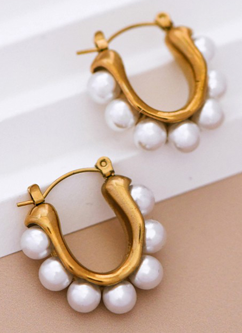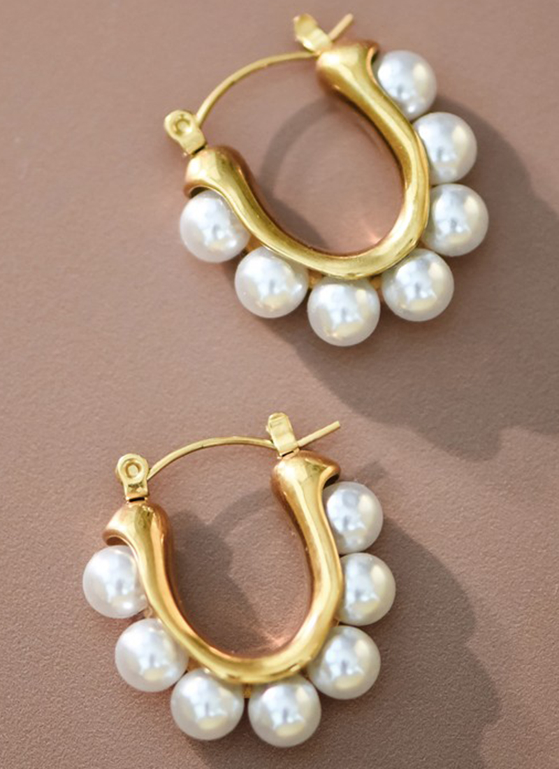 18K Gold Dipped Stainless Steel Pearl Hoop Earrings.