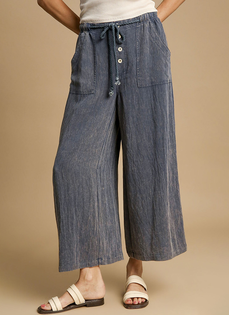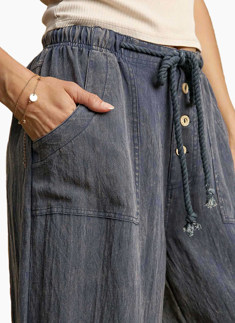 Look put-together on warm days while enjoying complete comfort in these soft mineral washed pants made with breezy wide legs and a rope drawstring waist.