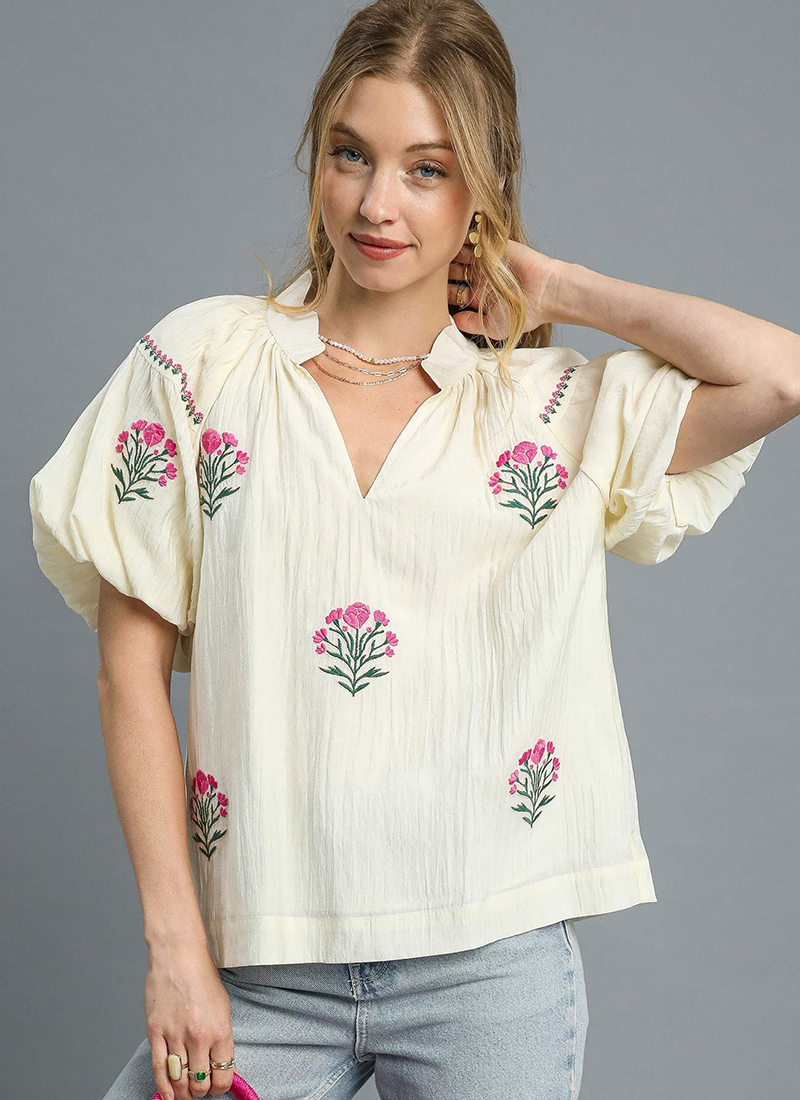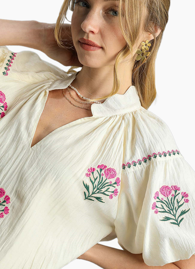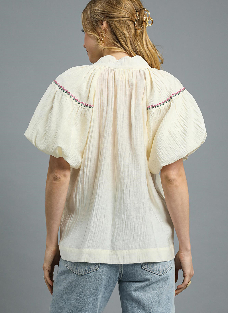Sofia Embroidered Puff Sleeve Blouse